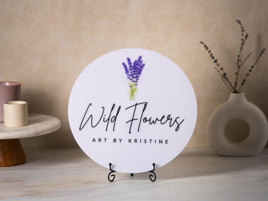 Round Acrylic Sign (Logo) w/ No Holes - Custom signage for office rental door, small business logo sign, craft fair artists trade show signs