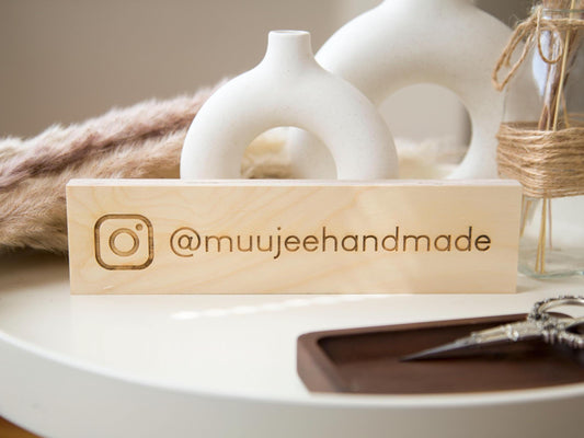 Plywood Social Media Sign - Custom Hashtag Tabletop Display, Username Tag, Minimalist Business Signage for Instagram & Facebook