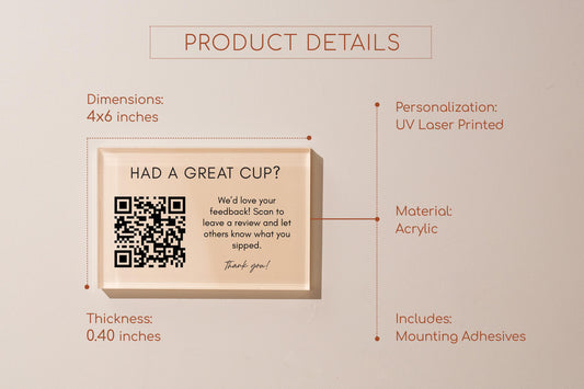 4x6 Pastel Acrylic Wall QR Sign (D3) - Your Text On Wall Sign Custom Stick-On Signage for Guests Shop Office Business Instagram Tip Reviews
