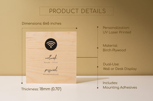6x6" Square Birch Plywood Wifi Sign (D1) - Custom Wood Internet Password Signage Wall or Table Display Business Office Shop Salon Bar Cafe
