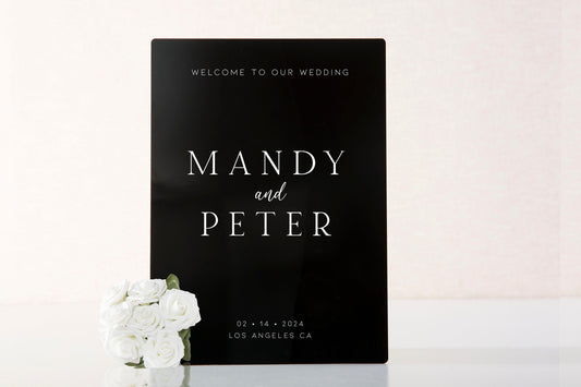 Personalized Acrylic Wedding Welcome Sign (Design 1) - Custom Modern Bridal Event Engagement Party Rehearsal Dinner Nuptials Signage