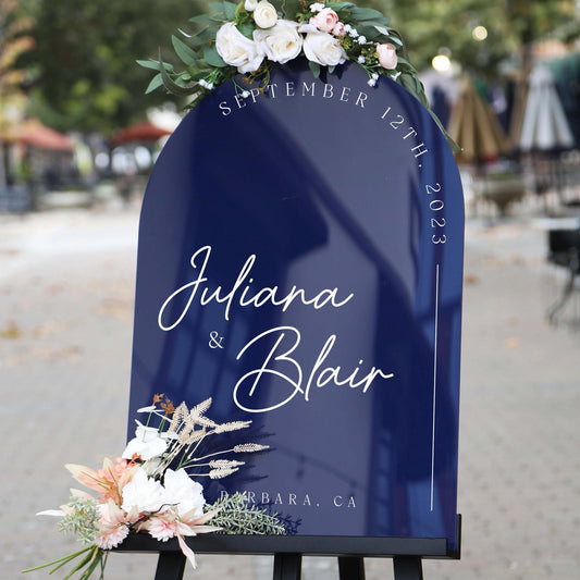 Personalized Arched Acrylic Wedding Welcome Sign (Design 1) - Modern Wedding Venue Entrance Engagement Bridal Shower Party Signage Display