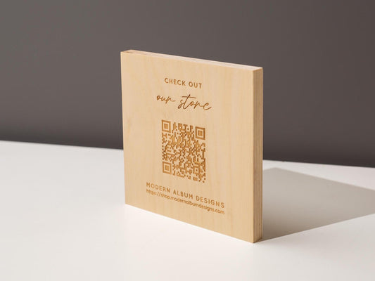 Birch Plywood QR Code Sign - Custom Wood Block Counter Display Laser Engraved UV Printed, Business Website Link Menu Reviews Payments