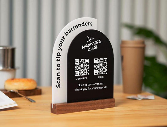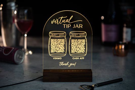 Arched QR Code Sign & Light Up LED Stand (Virtual Tip Jar) - Scan for Tips Payment Venmo Paypal Cashapp, Restaurant Bars Bartender Sign