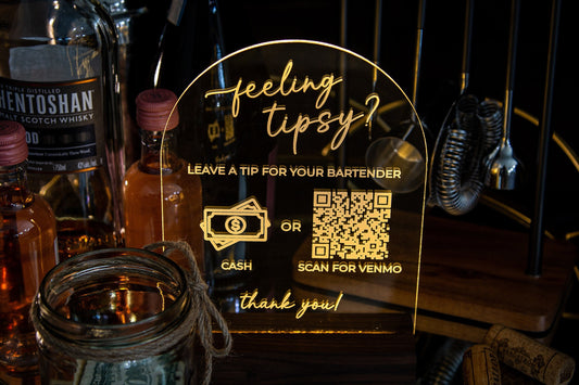 Arched QR Code Sign & Light Up LED Stand (Feeling Tipsy) - Scan for Tips Payment Venmo Paypal Cashapp, Restaurant Bars Small Business Sign
