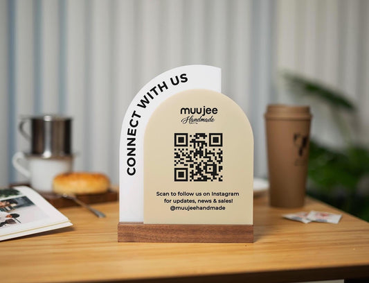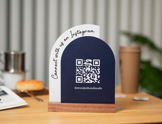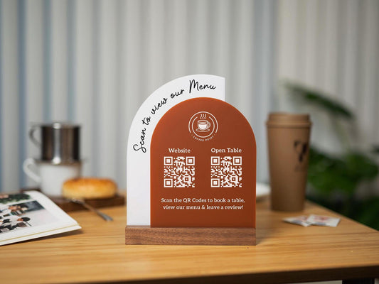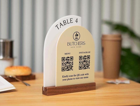 Our custom table business signs make your branding, hours, and promotions impossible to miss. Transact easily with QR display signs for restaurants, salons, shops, and more.