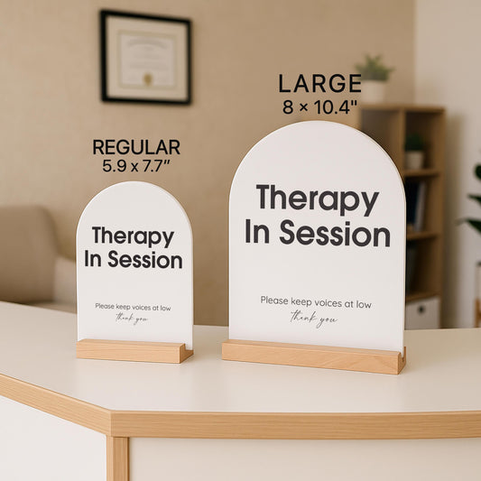 Arch Acrylic Sign w/ Base (D10) - In Session Meeting Display, Custom Signage for Business Clinic Office Retail Shops Trade Craft Show