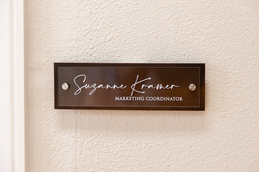Our personalized wall name plates instantly communicate professionalism and attention to detail that clients remember. Perfect for business signs, rental room numbers, office signs, salon signs, and more.