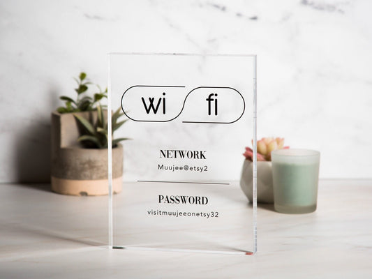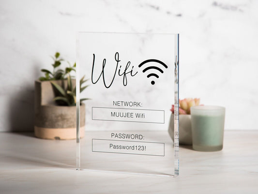 Wifi Password Sign (Acrylic Block) - Custom Internet Table Sign for Home & Airbnb Rental Hotel Small Business Signage New Home Owner's Gift