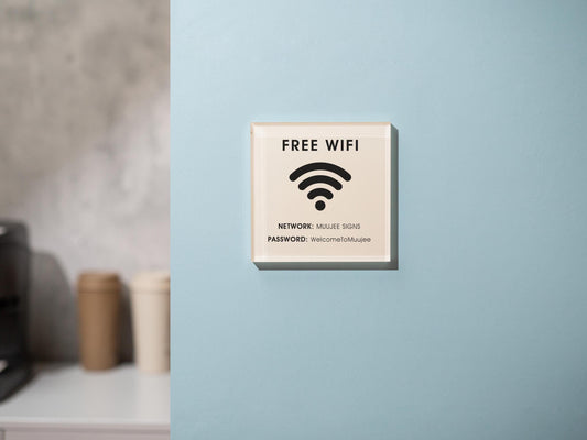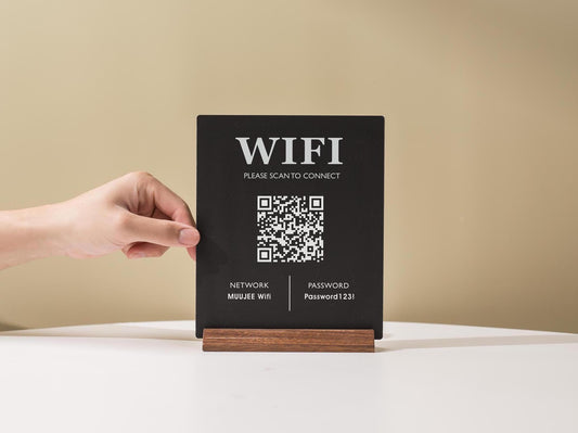 Our custom WiFi signs provide guests instant access information that blends with your interior designs. Suitable QR internet display signs for cafes, restaurants, hotels, offices, waiting rooms, salons, and more.