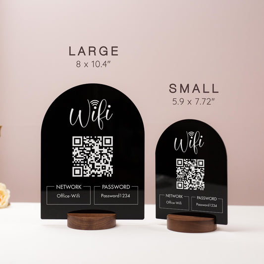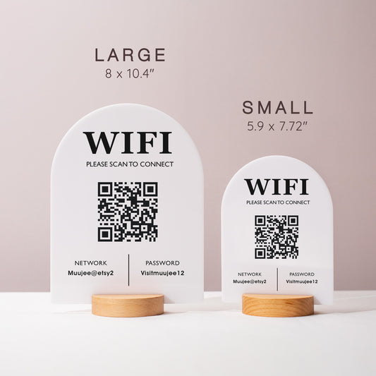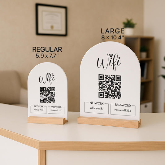 QR Code Wifi Arch Acrylic Sign w/ Base (D4) - Scannable Wifi Table Sign Home Airbnb Rental Small Business Office Salon Spa Clinic