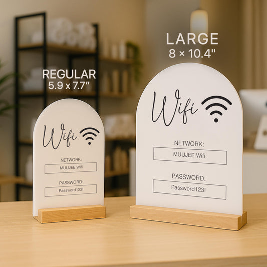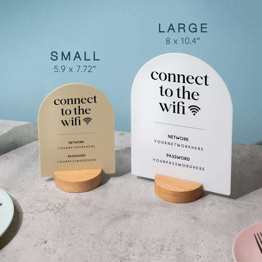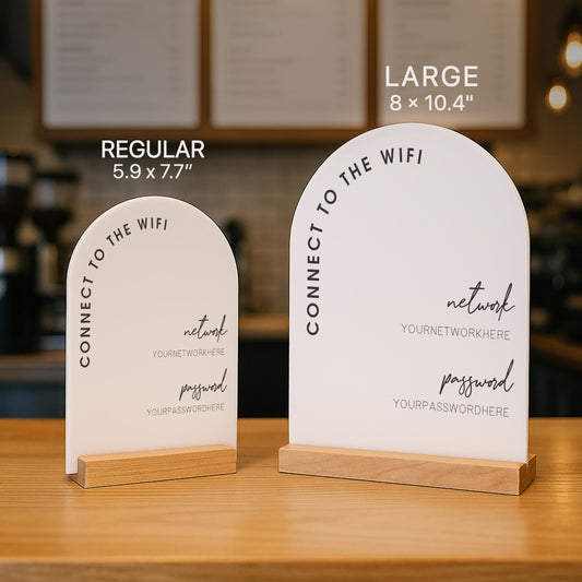 Arch Acrylic Wifi Sign w/ Base (D5) - Custom Wifi Password Display Home Office Business Shop Airbnb Rental Decor Visitor Reception