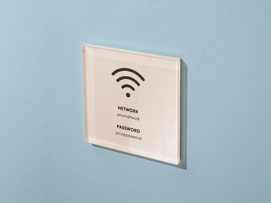 Wifi Password Sign (Acrylic Block) - Custom Home Airbnb Rental Sign for Small Business Hair Nail Salon Station Decor Restaurants Bars Hotel