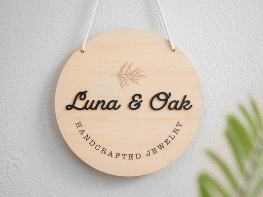Custom Round Wooden Sign - Small Business Booth Your Actual Logo Minimalist Display Sign Store Front Small Shop Logo Circle Wooden Handmade