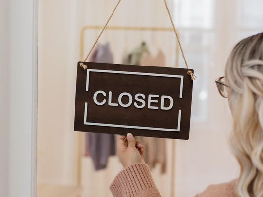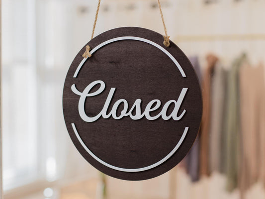 Open Closed Wood Hanging Sign (Design 1) - Double Sided Business Sign For Boutique Shop Storefront Window Signage Outdoor with White Rope