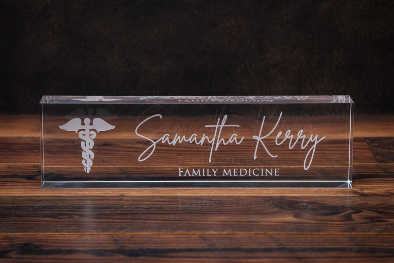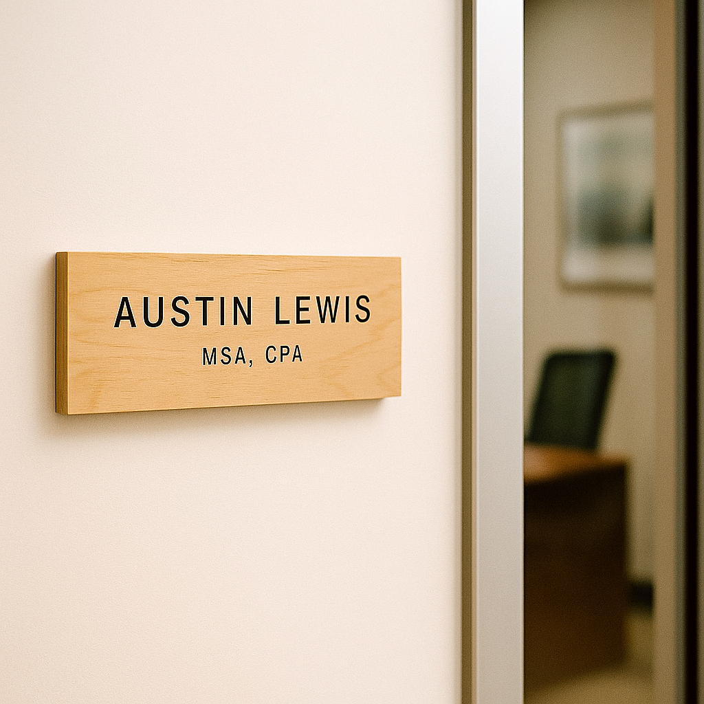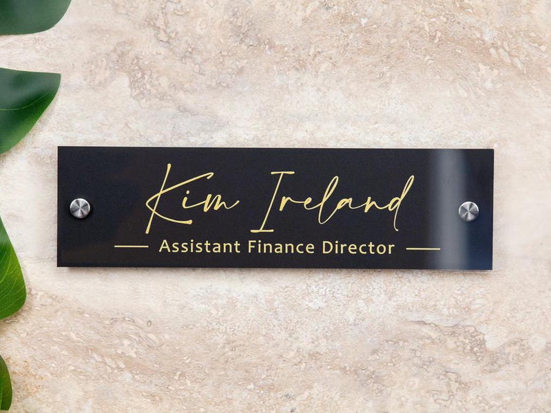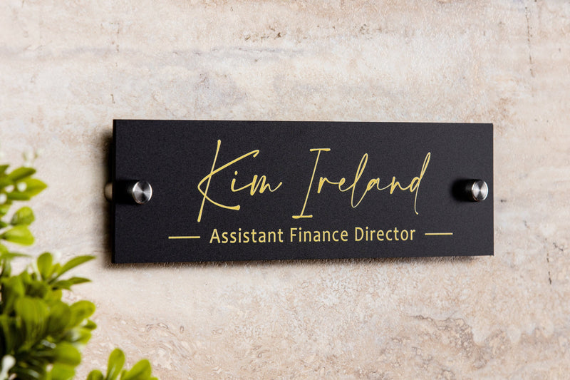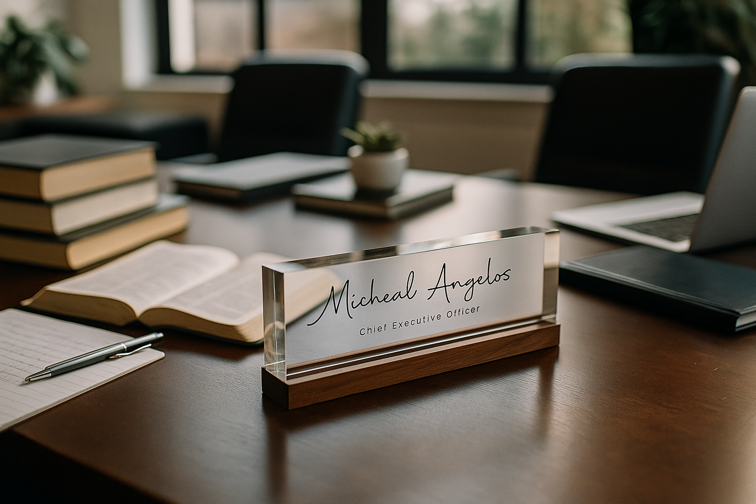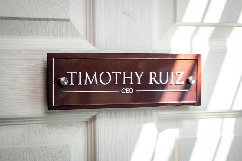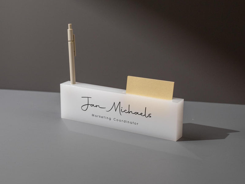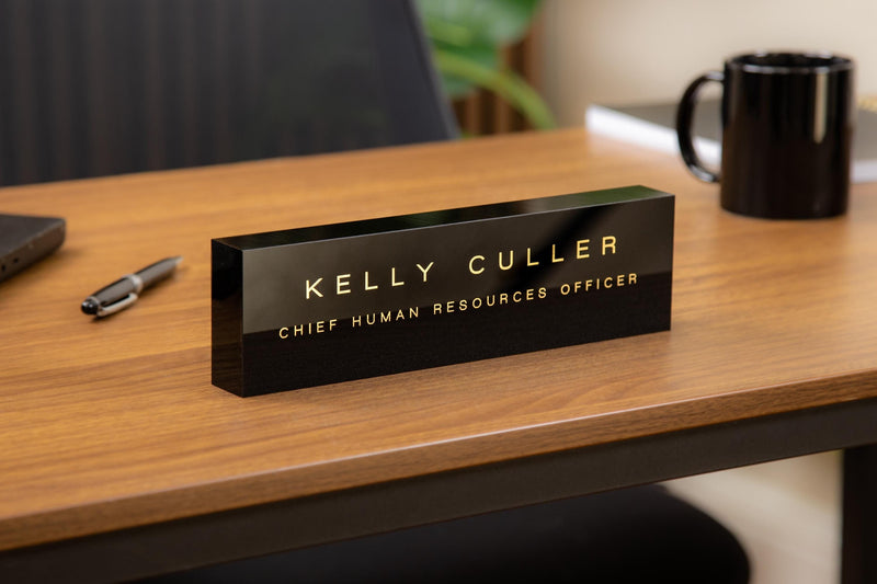 A crisp, modern desk name block that puts your title on display with confidence.